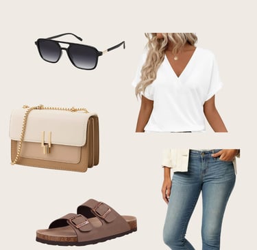 Neutral sandals add both comfort and style. They keep the look relaxed while still feeling intentional and trendy.